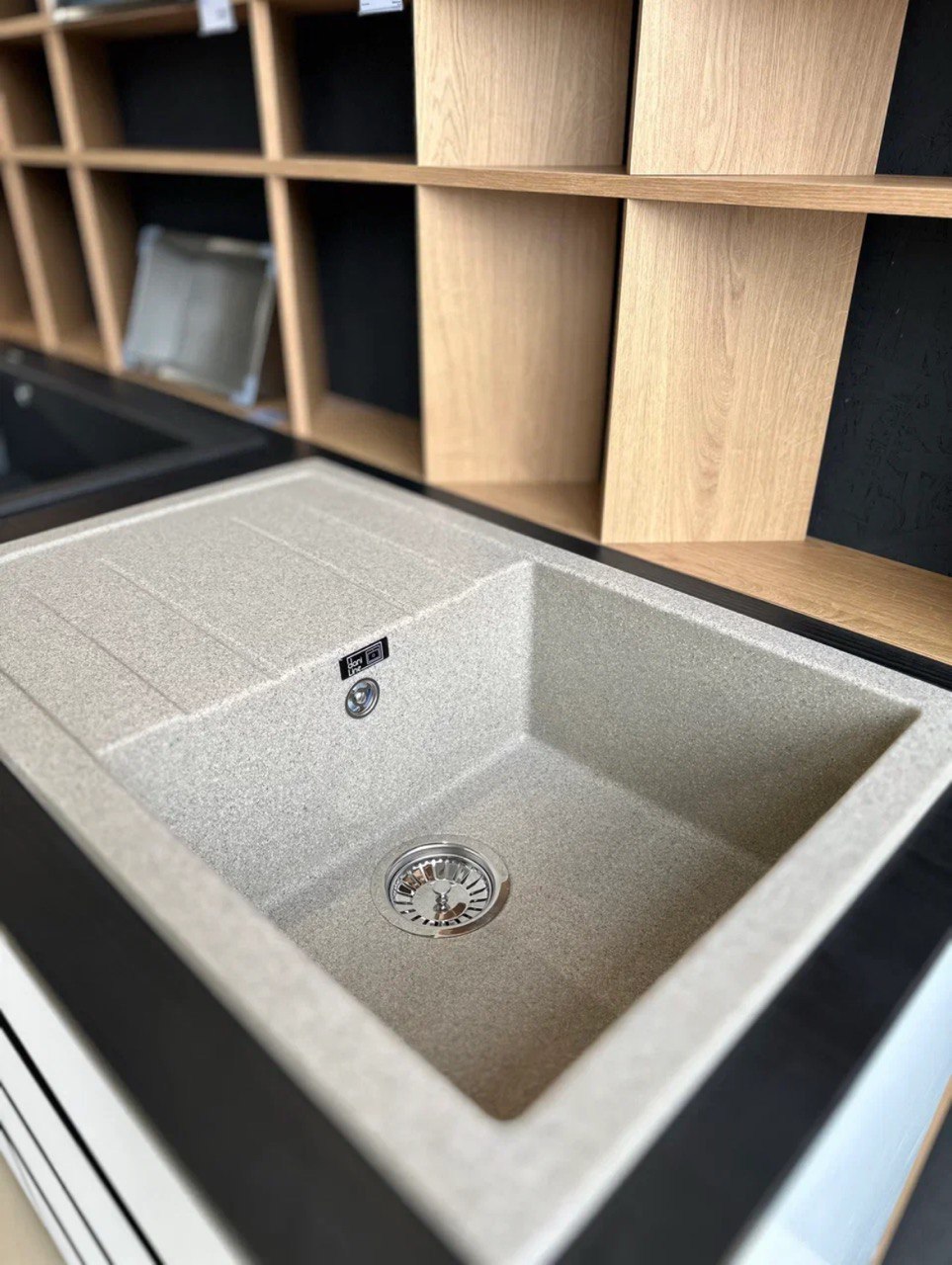 - Выбираем материал: характер и практичность. Мойки из нержавеющей стали — это вечная классика. Они гигиеничны, не боятся перепадов температур, легкие. Матовые поверхности менее маркие, чем глянцевые, а популярная фактура «антик» позволяет скрывать мелкие царапины. Такая мойка универсальна и впишется в любой стиль. Кварцевые мойки — выбор тех, кто ценит тишину и долговечность. В их составе более 80% кварцевой крошки, что делает поверхность прочной, устойчивой к сколам и ударам. Они не гремят от падающей посуды и представлены в широчайшей палитре цветов. Каменные мойки - воплощение статусности и экологичности. Они обладают уникальной гладкой поверхностью, на которой не размножаются бактерии. Такие мойки часто монтируются вровень со столешницей, создавая эффект монолитного полотна.