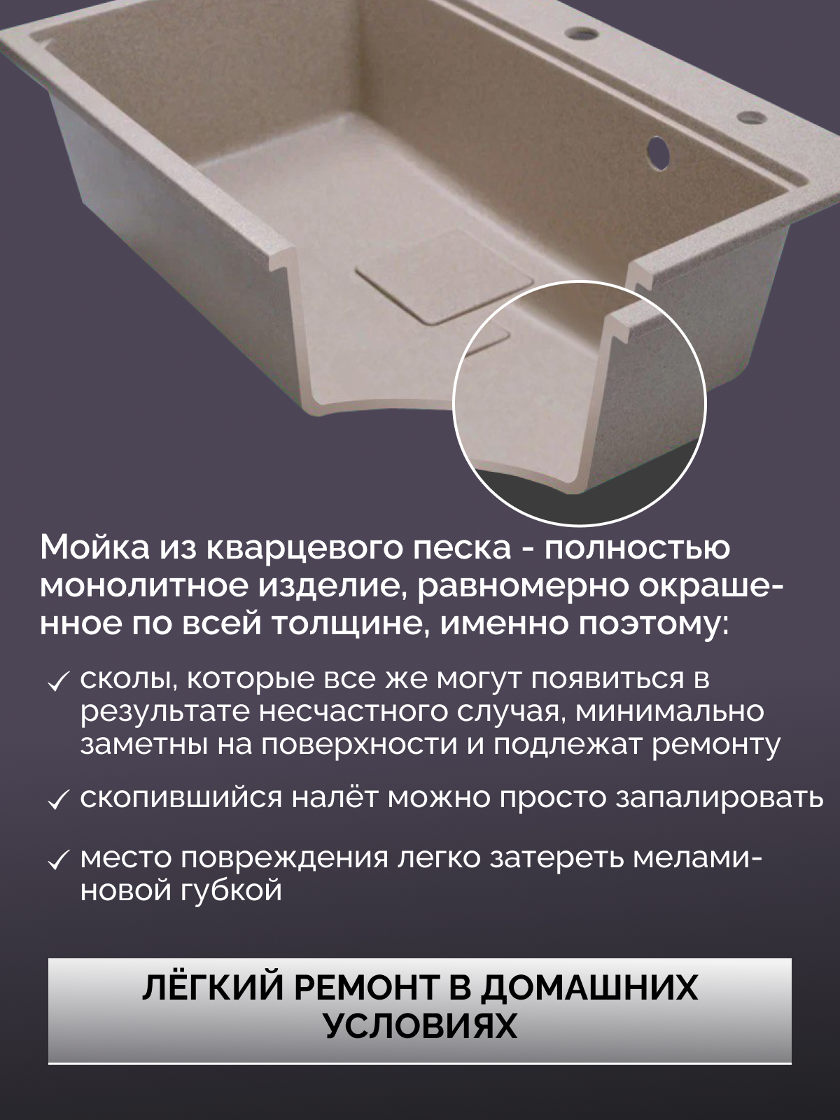 Кварцевая мойка для кухни