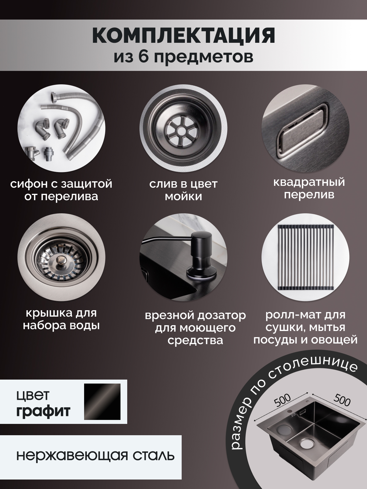 —Мойка из нержавейки Ролл-мат 50х50