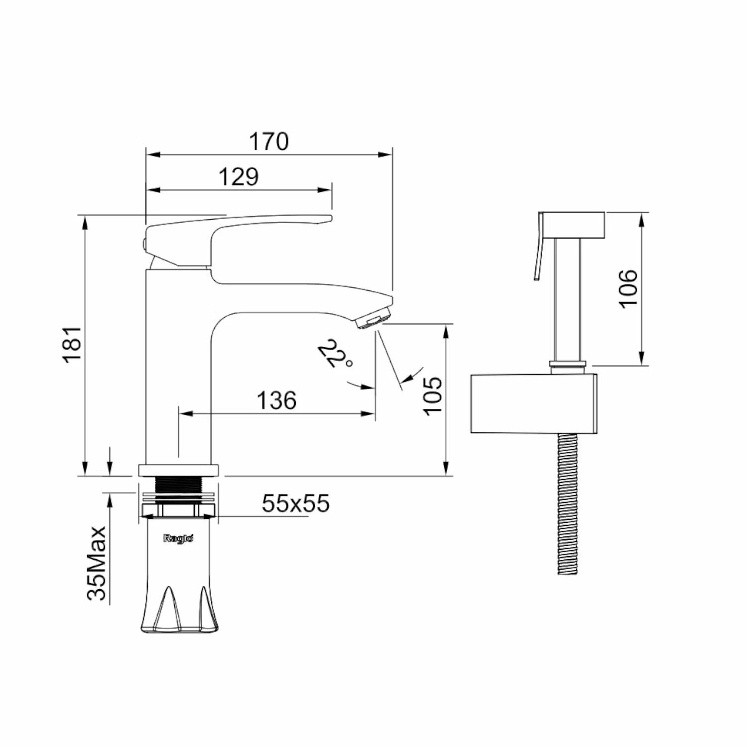 —Смеситель Raglo с гигиеническим душем для умывальника
