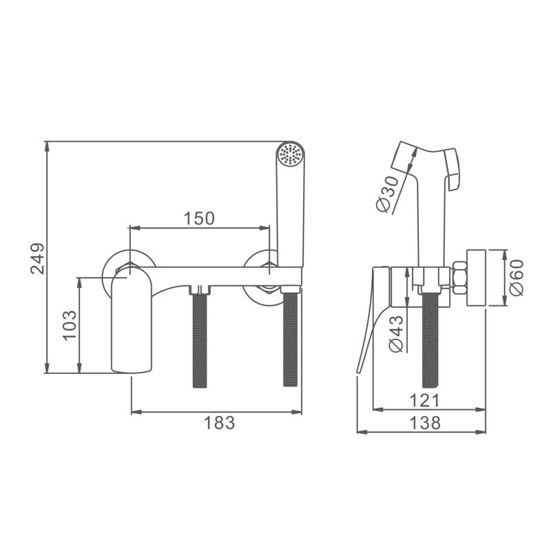 —Смеситель Splenka настенный с гигиеническим душем S54.51.03