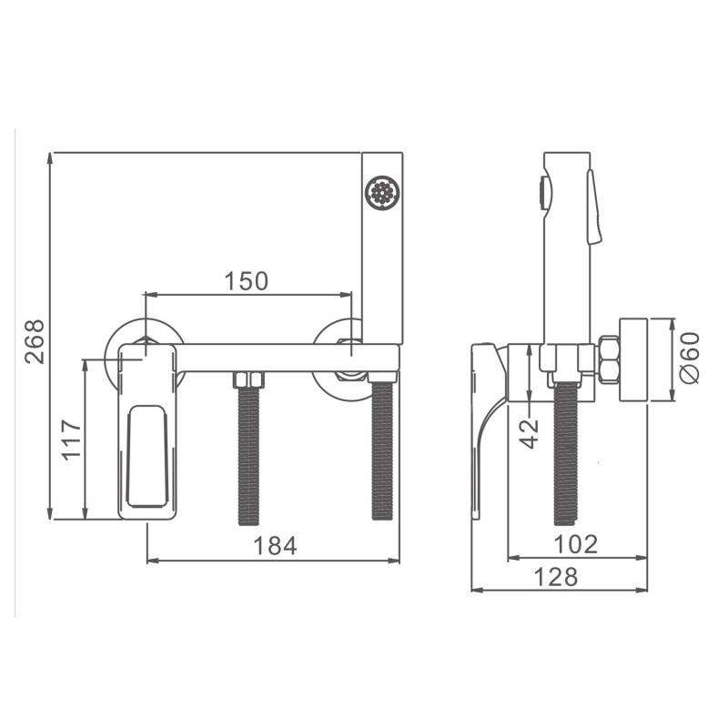 —Смеситель Splenka настенный с гигиеническим душем S55.51.03