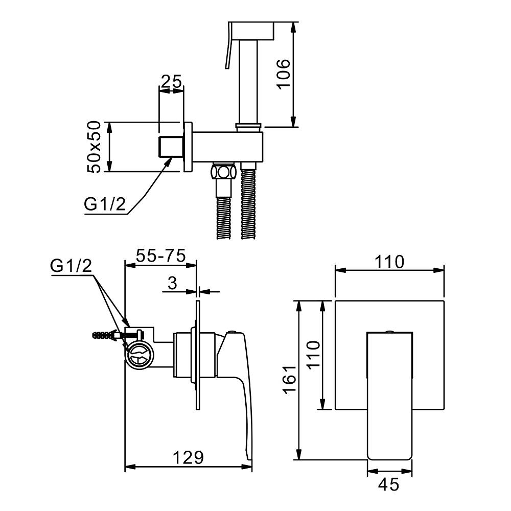 Смеситель Raglo с гигиеническим душем встраиваемый